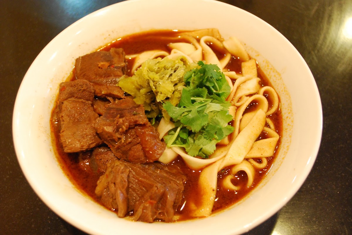 Ordered take out. The beef noodle soup is very authentic. The broth was flavourful and you could tell it was from the spices and beef and not from MSG. I personally have a msg sensitivity and did not detect any in the dishes from here. The beef was tender was marinated well. The triple and tendon were also also tender with some chew, not a mush like some other places. The house made noodles had a good bounce and were not overcooked. Appreciated the options to add extra vegetables for a small charge. Take out packaging was on point. Noodles with toppings and soup packed separately. Soups also had an extra bag around in case of spillage. Would recommend and eat here again.