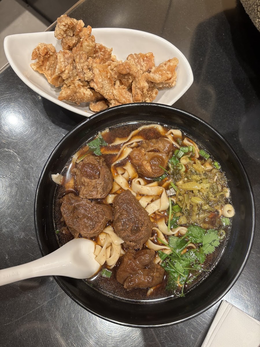 Good place for Taiwanese style beef noodles soup. Recommend to have shin beef (half meat and half tendon) as it’s more tender than the normal beef meat pieces. Comes with selection of noodle thickness. The soup is tasty and rich. Add on like the deep fried tofu is good.