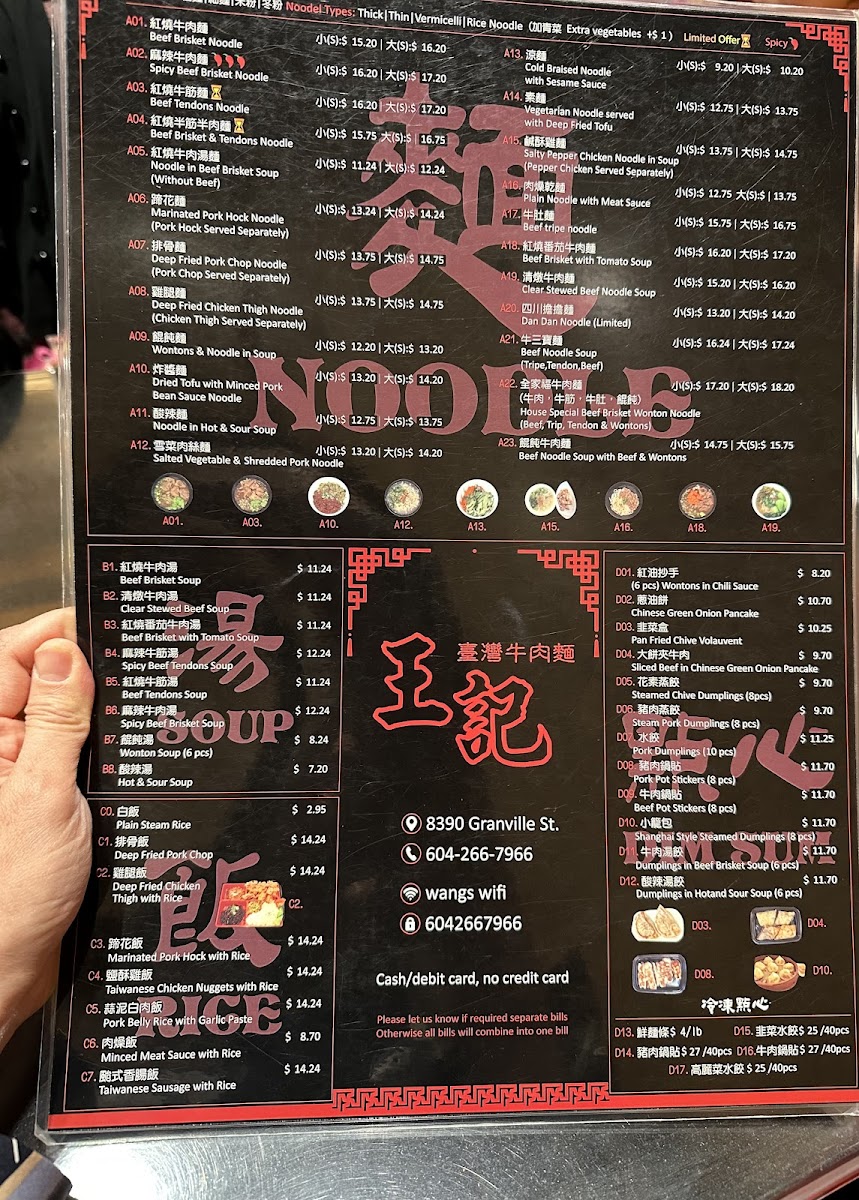 Welcome to Wang's Taiwan Beef Noodle House, a delightful culinary gem nestled in the heart of Vancouver at 8390 Granville St. This Taiwanese restaurant is renowned for offering authentic flavors that transport you straight to Taiwan with every bite. Known for its warm atmosphere and friendly service, it’s no wonder this place has garnered praise from both locals and visitors alike.